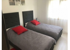 Stan na katu se sastoji od hodnika, dnevnog boravka , kuhinje i blagovaonice , 3 spavaće sobe , 2 kupaonice i velike terase.