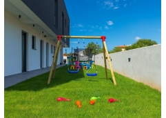 Offriamo una nuova moderna villa duplex costruita su un terreno di 1200 m2 in una posizione tranquilla circondata da nuovi servizi e casa per le vacanze.