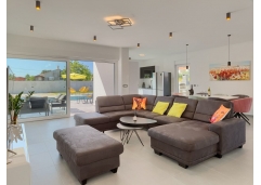 We offer a new modern duplex villa built on a plot of land of 1200 m2 in a quiet location surrounded by new facilities and holiday home.