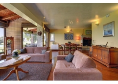 Prizemlje vile sastoji se od ulaznog hodnika, toaleta , 1 spavaće sobe sa kupaonicom te od predivno uređenog dnevnog boravka sa impozantnim kaminom, kuhinje i blagovaonice sa izlazom na veliku natkrivenu terasu i prekrasnu okućnicu sa bazenom. U podrumu vile smješten je predivan vinski podrum.