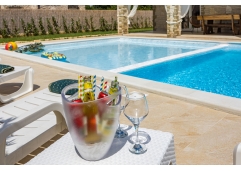 Vila se sastoji u prizemlju od ulaznog hodnika, 1 kupaonice, 1 spavaće sobe, ostave , dnevnog boravka, kuhinje i blagovaonice sa izlazom na prekrasnu novouređenu okućnicu i novi moderni bazen od gotovo 60 m2 podjeljen na 2 dijela - veći dio za odrasle i manji sa plitkom vodom za djecu.
