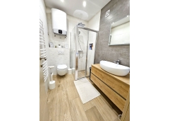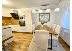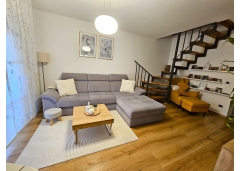 STAN 1 - Moderno uređen dvoetažni stan u prizemlju sa izlazom na terasu i pripadajuću okućnicu. Stan se sastoji od dnevnog boravka, odvojene kuhinje sa blagovaonicom , 2 spavaće sobe , 1 kupaonice i 1 toaleta .