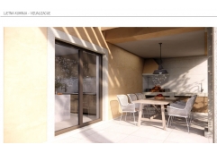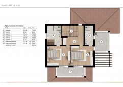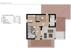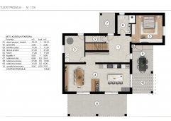 U prizemlju se nalaze dnevni boravak , kuhinja i blagovaonica , kupaonica i 1 spavaća soba , na 1. katu se nalaze 2 velike spavaće sobe sa kupaonicama i velikim terasama, a 2.kat se sastoji od velike open space prostorije sa kupaonicom i izlazom na veliku natkrivenu terasu sa fantastičnim neometanim pogledom na more. Ovaj 2.kat može se urediti u dodatni dnevni boravak sa fantastičnim pogledom ili u master bedroom, teretanu , wellness...