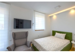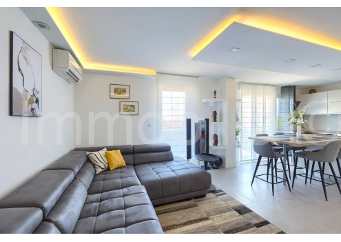 Stan je izgrađen od kvalitetnih materijala, s posebnom pažnjom na detalje. Energetski učinkoviti prozori s komarnicima i električnim roletama, vrhunska keramika , parketi i protuprovalna vrata , moderna kuhinja, prekrasno stubište sa led rasvjetom koje povezuje dnevni dio sa noćnim, led rasvjeta i indirektna rasvjeta u cijelom stanu , moderni garderobni ormari izrađeni po mjeri..