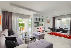 U prizemlju se nalaze dnevni boravak , kuhinja , blagovaonica i 1 spavaća soba sa kupaonicom , a na katu se nalaze još 2 spavaće sobe sa kupaonicama i velikom zajedničkom terasom.