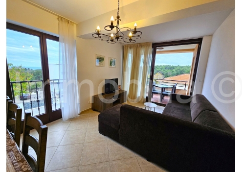 Prodaje se apartman u Premanturi, površine 84 m2, koji se nalazi na drugom katu zgrade i koji se sastoji od hodnika, dnevnog boravka, blagovaonice, kuhinje, predprostora, 3 spavaće sobe, 2 kupaonice i 2 terase. Stanu pripadaju i 2 garažna parkirna mjesta sa spremištem koja se nalaze u podrumu zgrade.