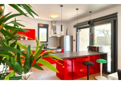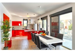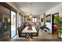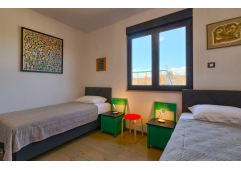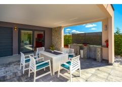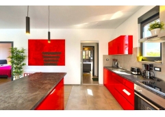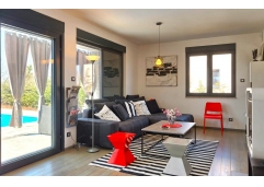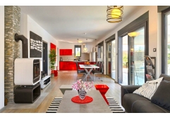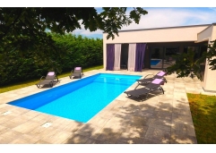 Vila je modernog dizajna, kompletno opremljena i namještena, klimatizirana , grijanje putem peći na pelete , alarm..