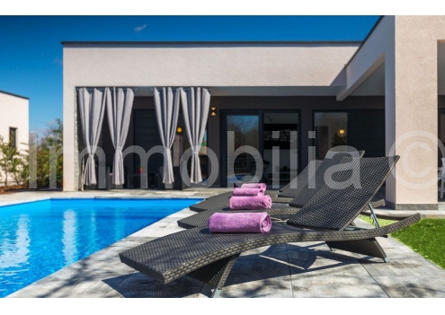 Nudimo modernu vilu prizemnicu sa bazenom na mirnoj lokaciji 5 km od Vodnjana !